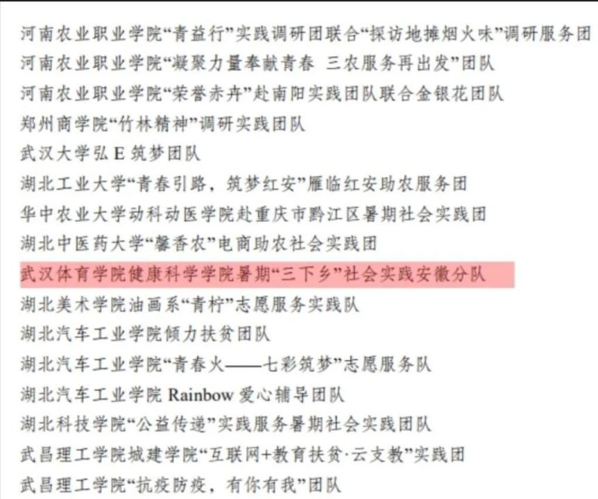 武汉体育学院每年“三下乡”暑期实践,都以学生专业技能为依托,在科学精准有效的防控措施下,开展便民服务、关爱留守儿童、传承文化等活动。武体青年用脚步丈量大地,用青春诠释志愿者的精神。我