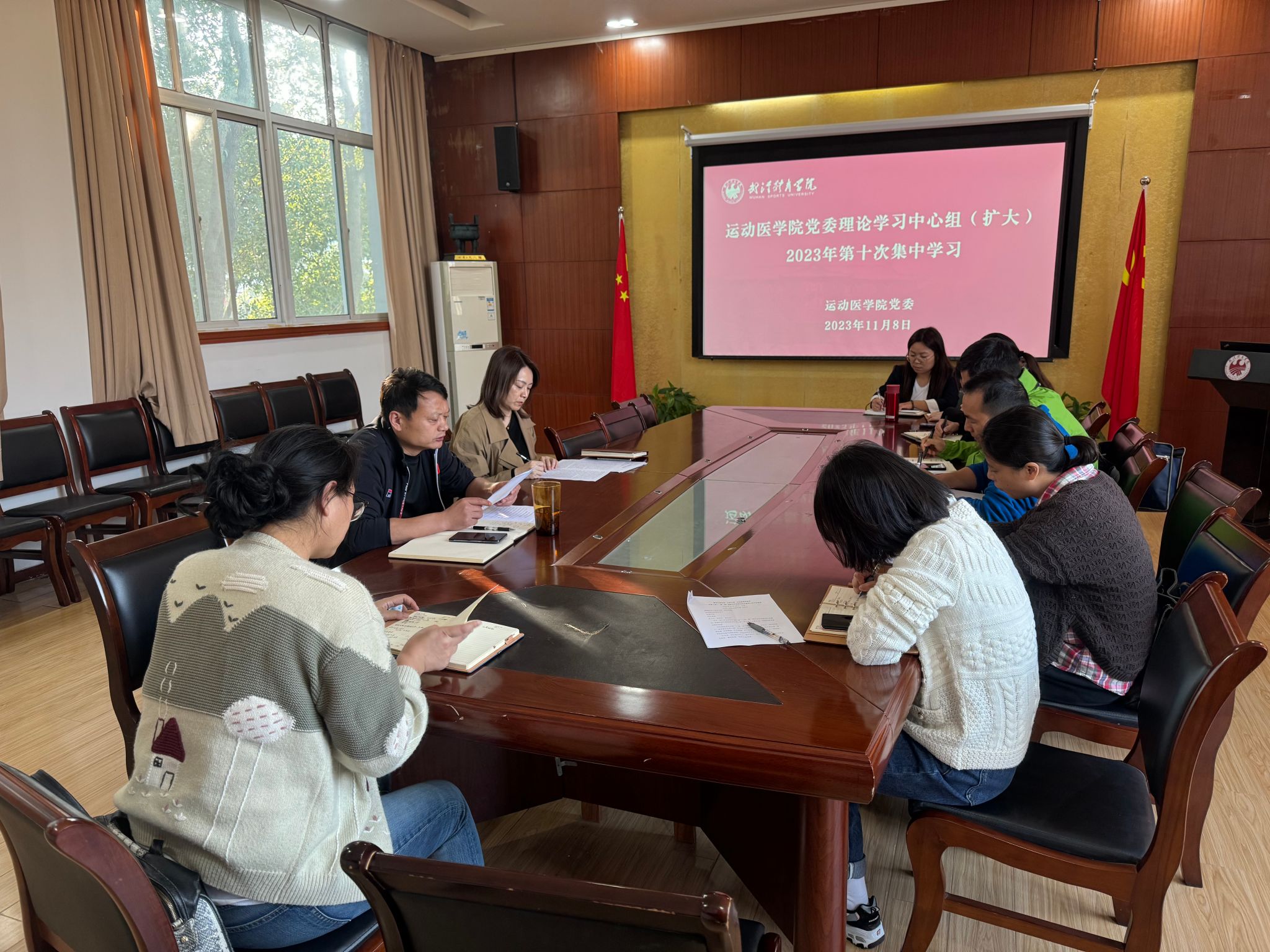 新闻网讯(通讯员贺资涵)11月8日下午,运动医学院开展党委理论学习中心组(扩大)2023年第10次集中学习,学院党委委员、党支部书记、教研室主任、全体辅导员参加学习。会议由学院党委书记李沙丽主持。