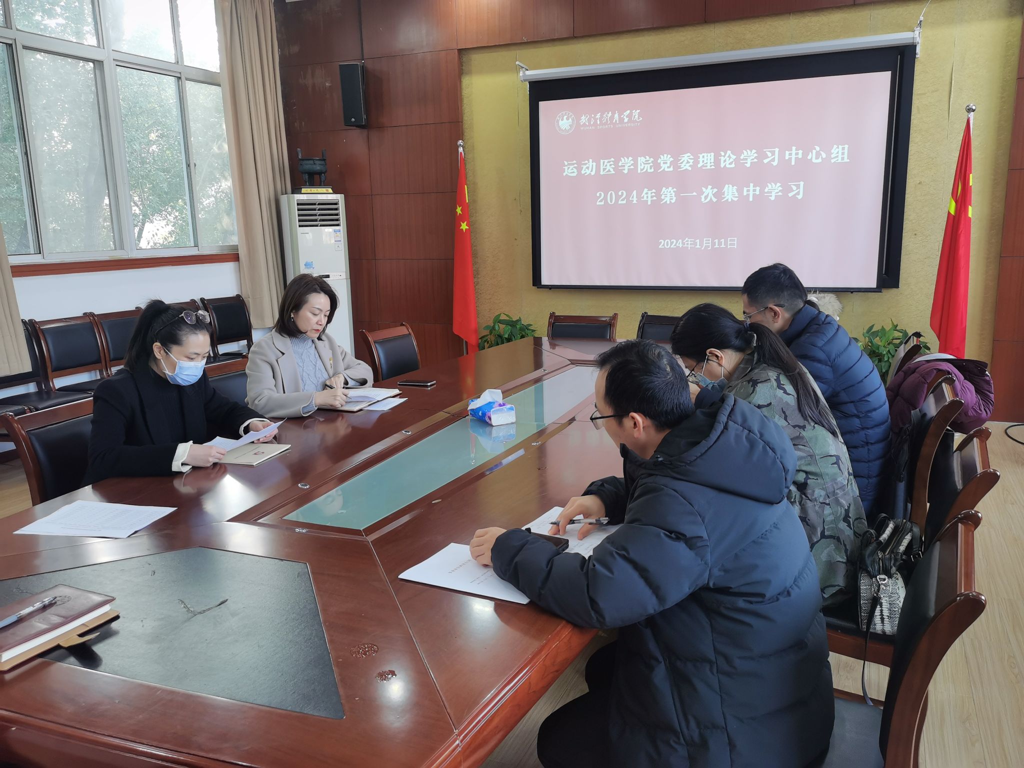 新闻网讯(通讯员贺资涵)1月11日下午,运动医学院开展党委理论学习中心组(扩大)2024年第1次集中学习,学院党委委员、党支部书记、教研室主任、全体辅导员参加学习。会议由学院党委书记李沙丽主持。