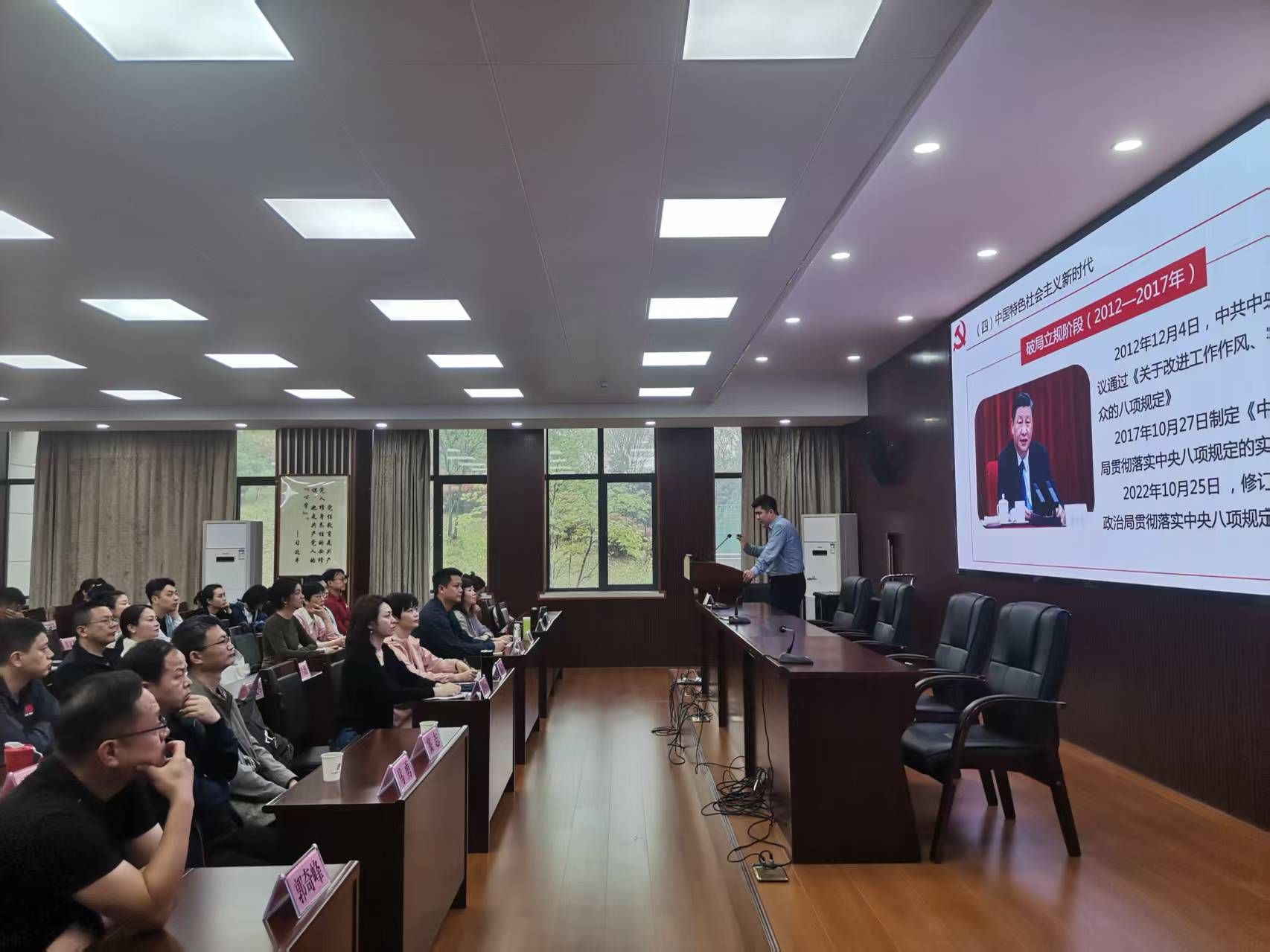 在随州市委党校,教师王岩以《锲而不舍落实中央八项规定精神加强党的作风建设》为题,从中央八项规定精神的历史发展、主要内容、锲而不舍落实中央八项规定精神的实践要求等三个方面,结合发生在高校的实际案例作了一堂精彩生动的专题讲座。通过学习,大家对八项规定与八项规定精神、形式主义官僚主义、享乐主义奢靡之风、违反八项规定精神清单80条等内容有了更深的理解,为进一步加强作风建设打下了坚实的理论基础。随后,全体学员进行了“走进红色阵地 学习先进典型——黄鹤楼酒业先进党支部参观学习”现场教学活动。