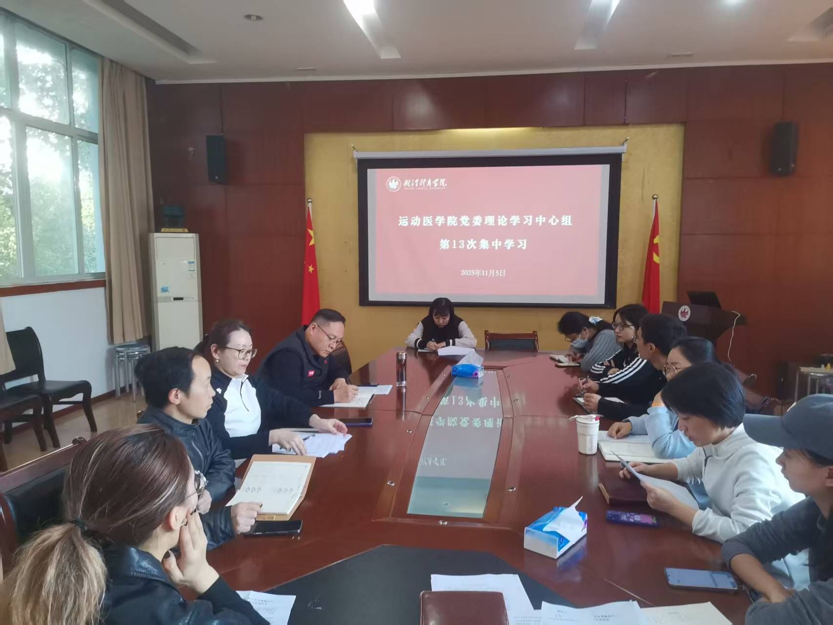 会议指出,要深学细悟党的二十届四中全会精神,聚力推动体医融合高质量发展。要精准把握运动医学领域发展方向,锚定核心任务靶向发力,推动学院工作与全会精神同频共振。要强化党建引领作用,筑牢学院高质量发展的政治根基。