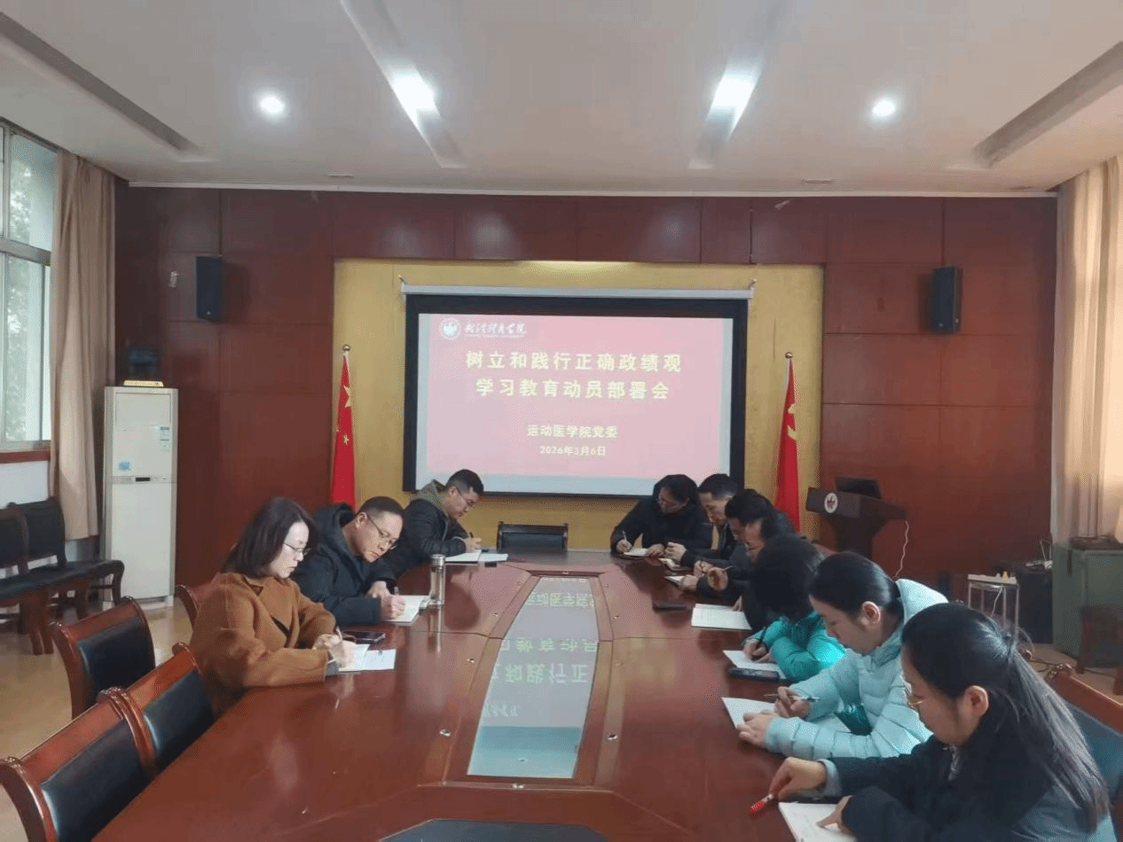 新闻网讯(通讯员吴莎)3月6日上午,运动医学院在学院会议室召开会议,动员部署树立和践行正确政绩观学习教育相关工作,学院党委副书记、副院长郭奇峰,各教师党支部书记,全体干部、辅导员参加此次会议。会议由学院党委书记李沙丽主持。
