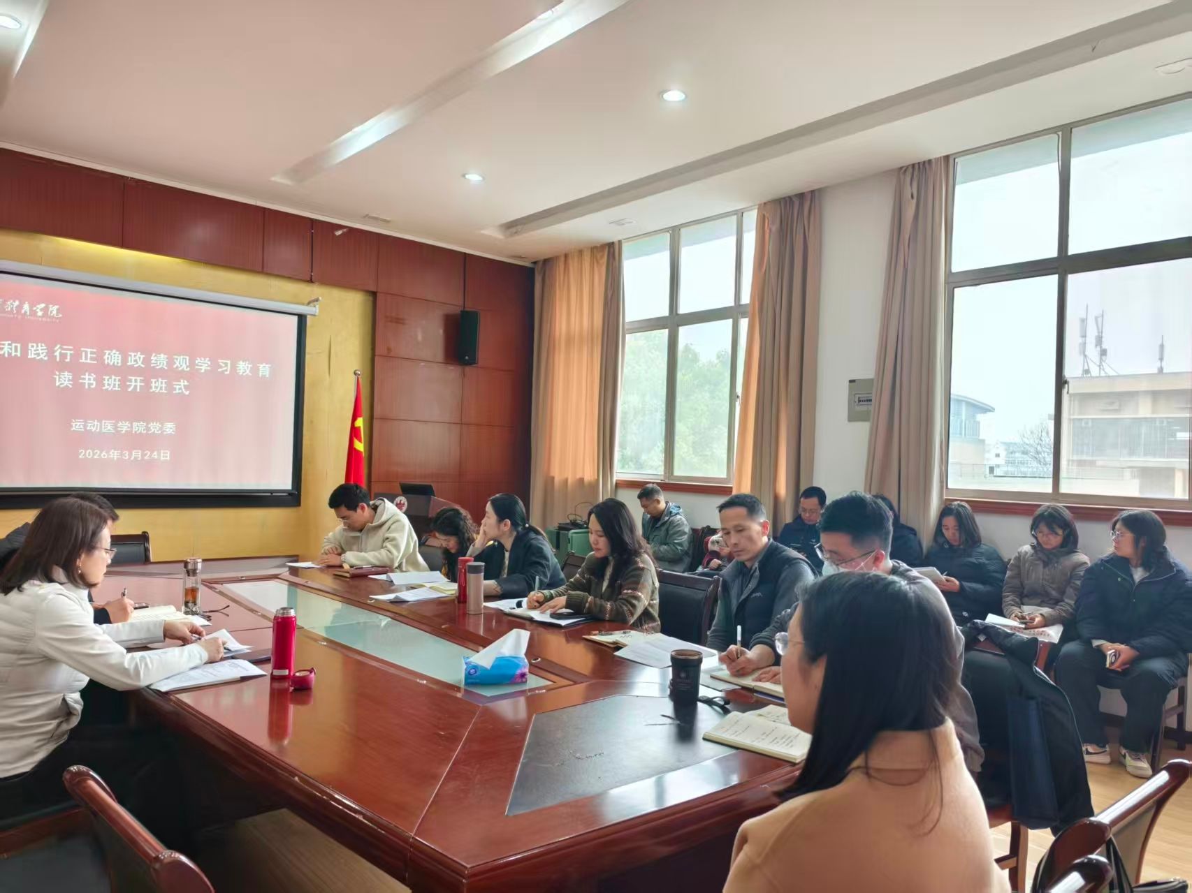 新闻网讯(通讯员雷林林)3月24日,运动医学院树立和践行正确政绩观学习教育读书班开班式在学院会议室举行,各教研室主任、全体党支部书记、行政干部、辅导员参加开班式,学院党委书记李沙丽主持开班式并作动员讲话。