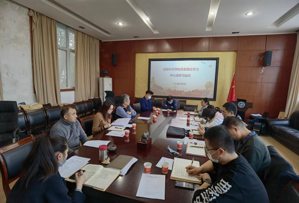 2022年3月4日下午,健康科学学院党委在学院会议室举行党委中心组学习(扩大)会议,党委书记李沙丽主持,学院领导班子成员、全体辅导员参加会议。